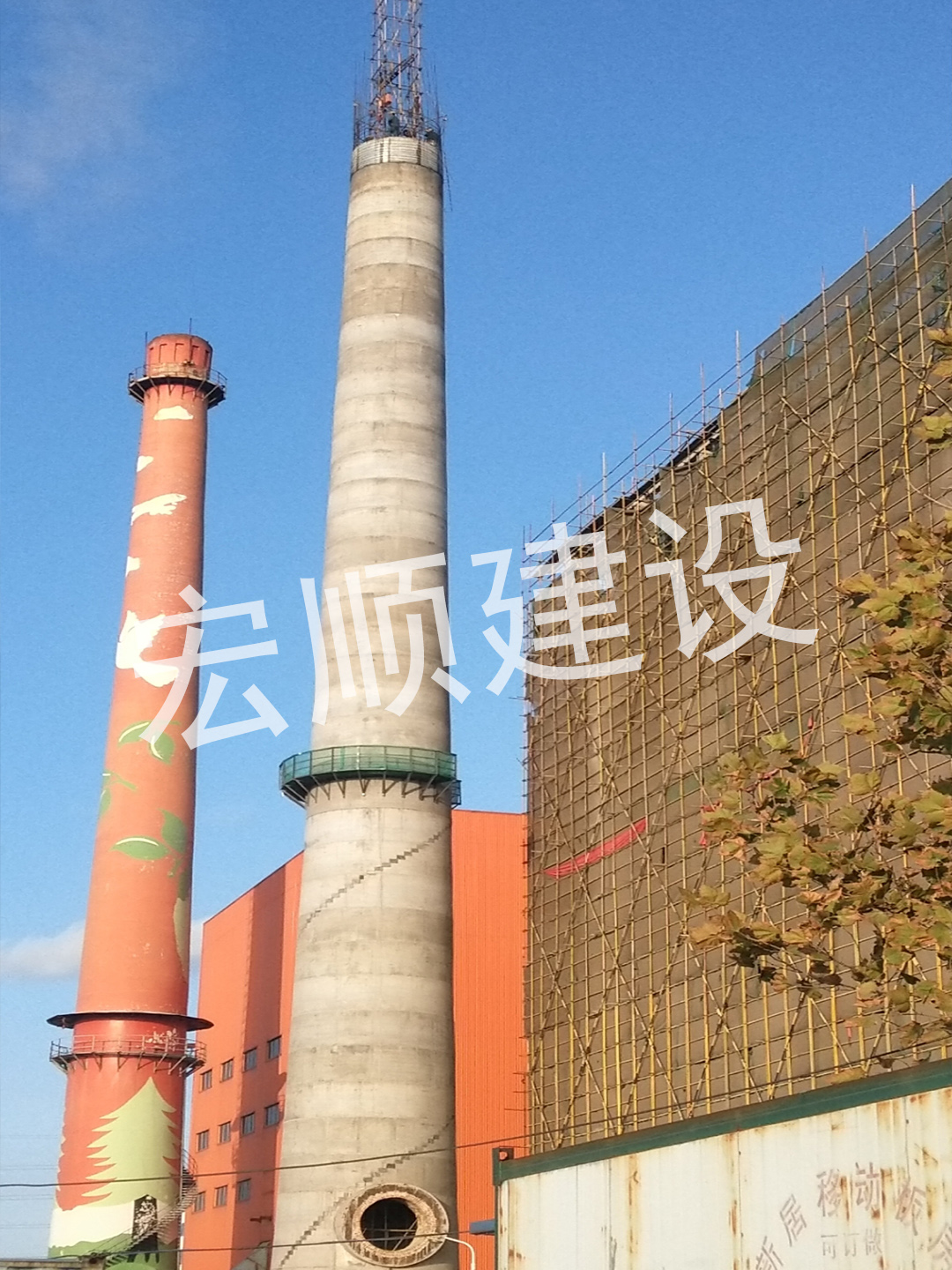 煙囪新建施工的豎井架是隨煙囪新建筒壁施工逐步增高