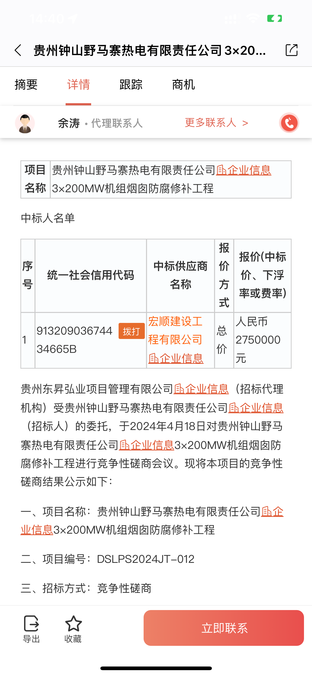 熱烈祝賀我公司中標(biāo)貴州鐘山野馬寨熱電機組煙囪防腐修補工程項目